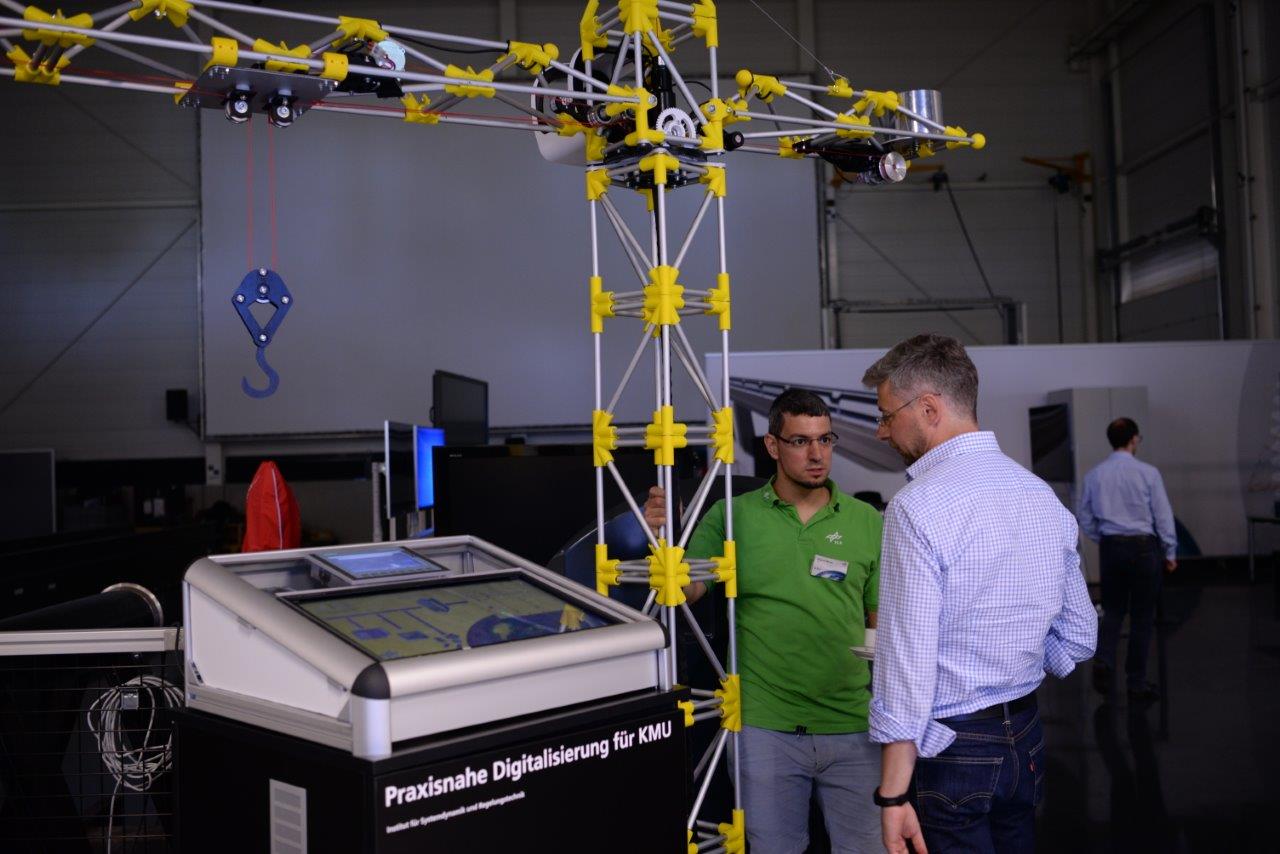 Die 750 Quadratmeter große Laborhalle des DLR-Instituts für Systemdynamik und Regelungstechnik in Oberpfaffenhofen bietet Raum für innovative Forschung, fortschrittliche Prüfstände und Forschungsanlagen sowie die Büros des System and Control Innovation Labs (SCIL).