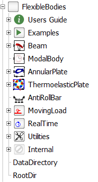 The commercial DLR FlexibleBodies Library enables the object-oriented and mathematically efficient modelling of flexible bodies as components of multibody and of arbitrary physical systems. It provides Modelica model classes to model beams, annular plates, anti-roll bars and general flexible bodies exported from finite element programs. The motion of a flexible structure is defined by superposition of a in general large, non-linear motion of a reference frame with small elastic deformations. The library is commercially available at LTX and Dassault Systems.